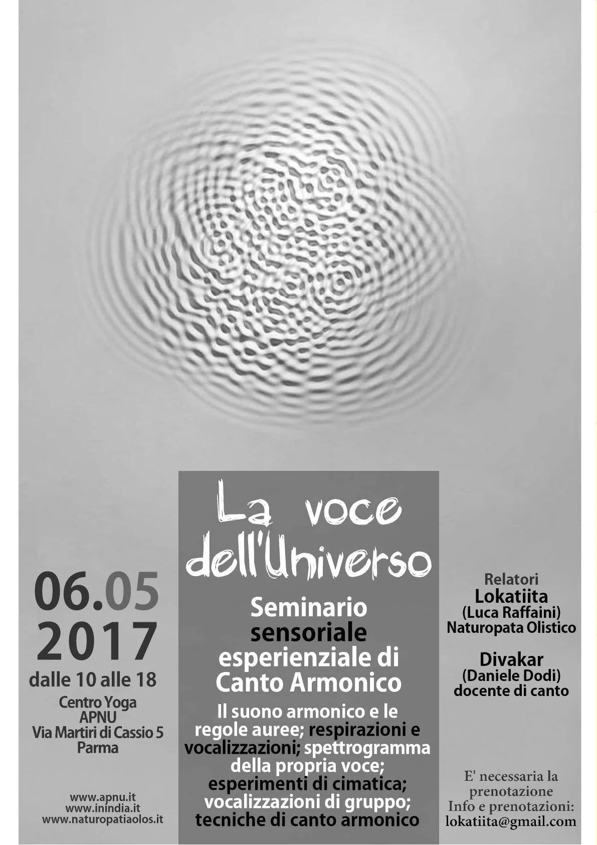 Seminario di Canto Armonico 2017 presso Il Centro Yoga Apnu (PR)